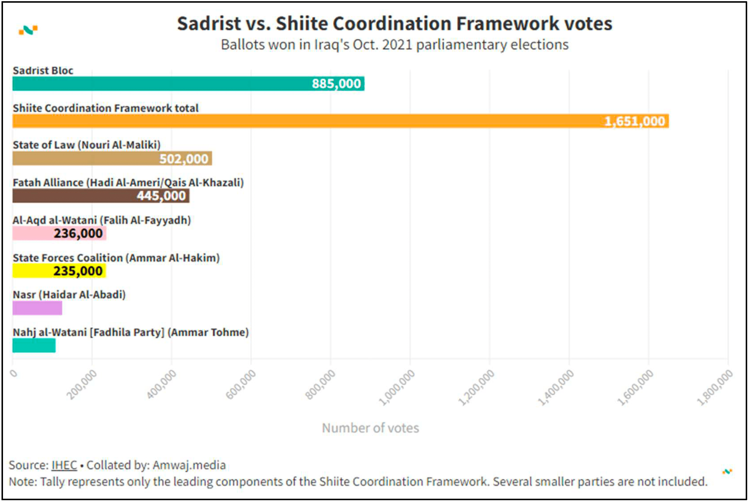 マウラウィによれば、サドル師は7 月30 日からの国民議会占拠等の行動を「ムハッラム革命」 (ムハッラム=ヒジュラ暦の最初の月の名前。この月の10 日にシーア派の宗教行事アシューラーがある。2022 年のムハッラムは7 月30 日日没から8 月27 日日没まで) と呼んでいた。サドル師はこの革命を通じて、イラクの権力バランスを彼に優位な方向に変えることができる考えていたと言う。マウラウィの分析では、2021 年10 月の国民議会選挙でサドル潮流が議席を増やして議会第1 党になったとはいえ、その得票数は前回2018 年選挙で得た130 万票から88.5 万票に減少した。これはそもそも投票率が42%と、これまでの選挙から大きく下げたことが影響しているのだが、支持基盤が固いと言われるサドル派でも投票率低下の影響を免れることはできなかったと言うことであった。更には、サドル師が対立するマーリキー元首相の調整枠組みは、参加政党の得票数合計は165 万票であり、サドル潮流の約2 倍ある。支持の枠組みとしてはこれだけの差があるので、サドル師としては何とかこの調整枠組みを分断したかった。